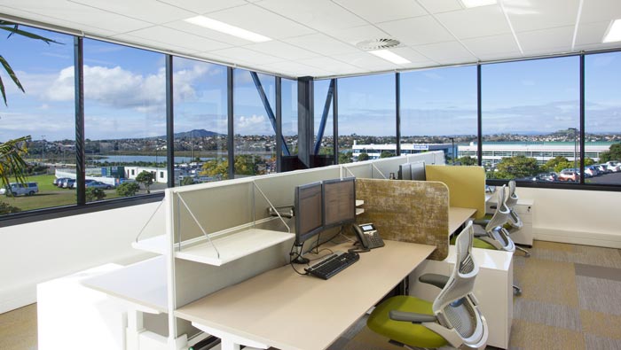 辦公區(qū)域的設計:空間四周全部由透明窗戶組成,這也是設計師希望看到的效果,因為這樣的設計可以將更多的自然風光引入室內,不管是眼光還是景色,在室內都可以一覽無遺,設計師需要的就是室內與室外的融合,以此讓輕松的辦公環(huán)境進行到底。