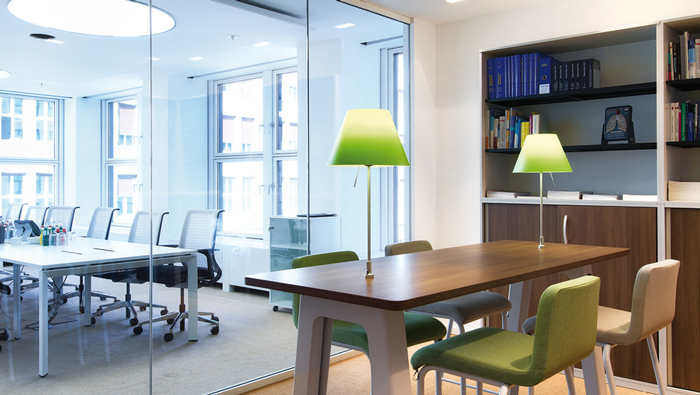交流區域的設計:此處不僅可供內部員工之間的相互交流,同時也可供與顧客之間的交流,在此次明亮是給人的第一感覺,在設計師的眼中,交流成功的前提就是有一個優質的交流區域,在這里陽光射入室內,讓一切都是那么的開放與和諧。