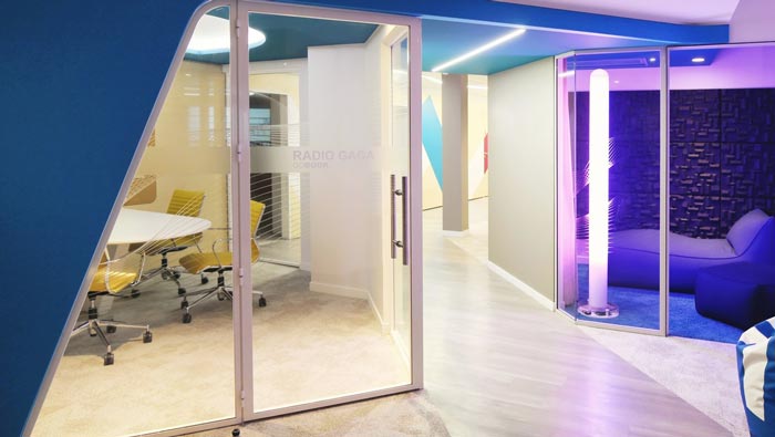 放飛身心的設計:此處是在一處轉(zhuǎn)角處,因為此處過于偏僻,無法承擔企業(yè)空間的需要,這就要求設計師能夠?qū)⒋颂庨_發(fā),設計師瀏覽了很多的設計,最后在幼兒園的一處秋千處取得靈感,設計師希望讓員工在這里可以放飛自己的身心,在蕩秋千之間忘卻煩惱,讓自己遨游在此刻。