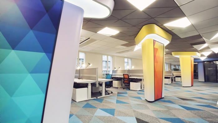 休息區(qū)域的設計:此處采用的是層級的變化,以此來提升空間的承載能力,一個小小的坐墊就完成了整個空間的設計,這樣的設計看起來簡單又實用,在設計師看來設計本身就是簡簡單單的,沒有必要搞得過于復雜,員工在這樣的空間之中可以去除心中的隔閡,展望美好的未來,讓其中毫無阻礙。