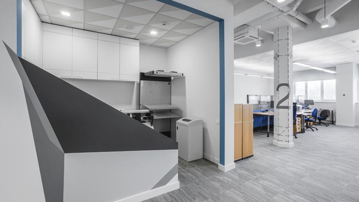 工具間的設計:在工具間內主要有打印機、儲藏柜等,相鄰的就是辦公工位,這樣設計的好處就是將相近的部門安置在一起,即不影響整個空間的布局,也加快了辦公的效率,對每一個空間也能夠做到合理的運用,讓辦公更加的人性化。