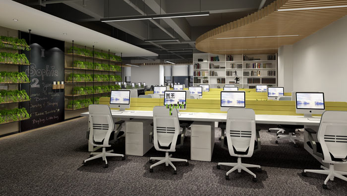 網絡辦公室辦公區設計:設計師對空間采用7:3的比例對空間進行劃分,在為企業打造舒適辦公空間的同時,以過道起到連接空間的作用,同時綠植的點綴為空間帶來絲絲活力。