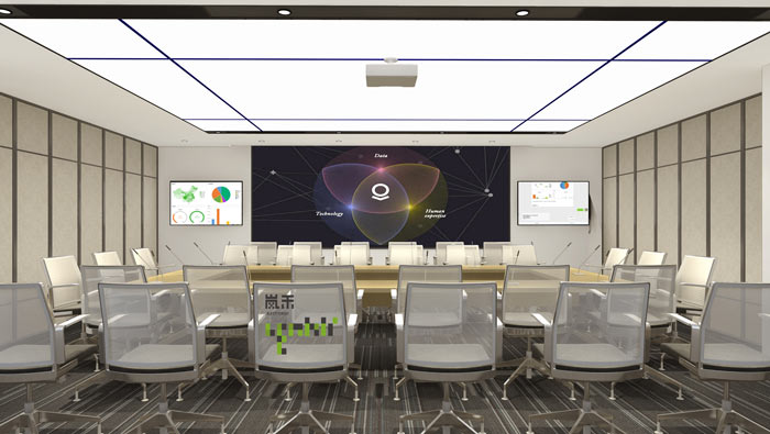 網絡辦公室大會議室設計:設計師在設計的時候,采用從內向外擴張的方式對空間進行設計,以中線向外部空間進行拓展,這樣的設計可以將空間進行合理的劃分與運用。
