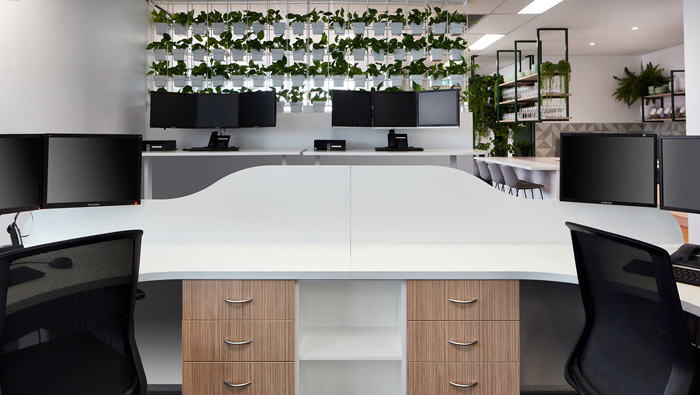 本次為網絡科技公司裝修設計效果圖,辦公室設計面積1300平方,設計師在辦公室設計中,從接待處開始,在整個空間使用木材飾面,深色和綠色調,為辦公室營造出溫馨、親切的氛圍。