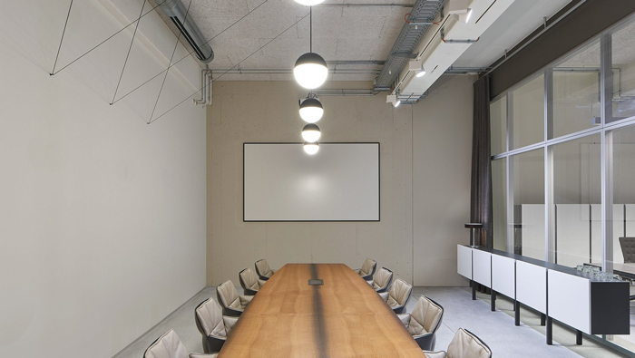 會議室的設計:雖然空間面積有限,但是在設計師看來,在會議室的設計上,一定不能小氣,因為會議室本身的意義就十分特殊,設計師希望讓每一個員工在這里,都可以感受到企業的良苦用心,在這里每一個人都為了企業的發展而獻計獻策。