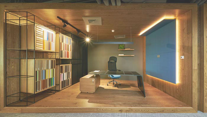 總經理辦公室的設計:設計師在設計的時候,與總經理進行了深入的交流,在交流的過程中設計師了解到,總經理希望可以與員工一起奮戰在第一線,故此設計師將其安置在開放又獨立的空間之中,這樣一方面可以為總經理提供一個獨立的空間,同時又可以與員工在一起,激發員工的斗志。