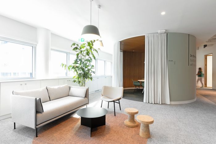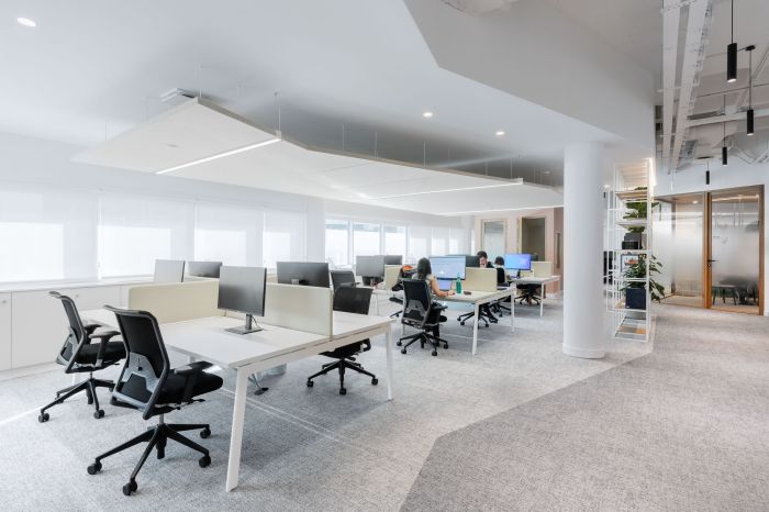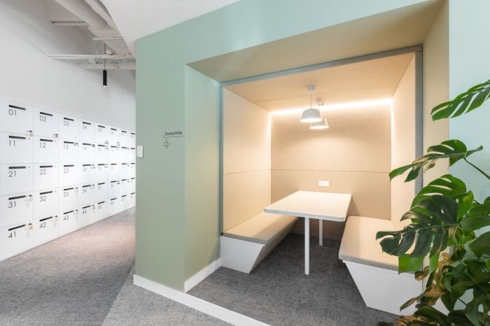 這些區(qū)域有相鄰的休息室空間、電話亭和非正式會議空間,可以滿足員工的多種需求,增加整個空間的利用率。工作區(qū)擁有大量的自然光和植物,提供了寧靜的氛圍。