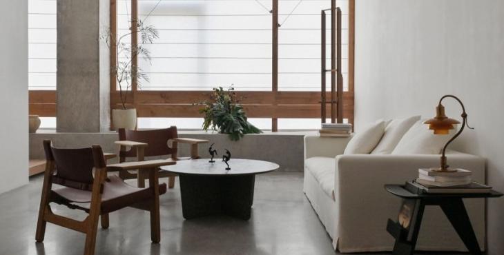 在材料上,鑲嵌在地面的來自海洋的貝類、直接從石場拉來的石方、北美松木清新的香氣,呼應著這個塑造“自然的形狀”的服裝品牌的質地。這些設置有利于有效率的工作和放松下來兩種狀態并存。我們希望它既能為工作提供便利性,但當你放松下來,這個辦公室又是一個令人感到舒服的地方。