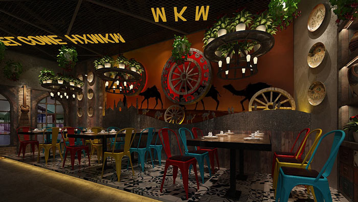 本次特色主題餐廳裝修設計方案講解到此結束,在本次餐廳設計中,設計師以工業風格為主基調,搭配新疆元素,目的就是為了將其融合在整個空間設計之中。
