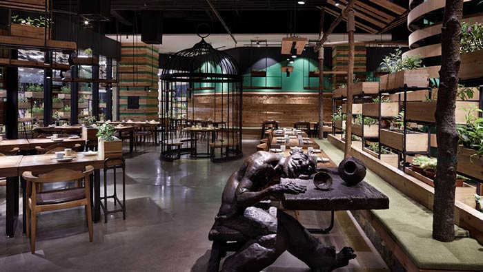 特色生態(tài)餐廳餐區(qū)設(shè)計:這里集結(jié)了藝術(shù)雕像、枯山水、有機蔬菜吧、有機大豆石磨區(qū)等等,最后匯集在餐廳的各個區(qū)域,這樣的就餐環(huán)境,讓客戶在就餐時猶如在農(nóng)場之中。
