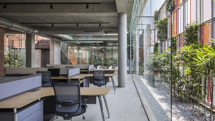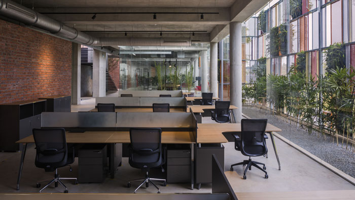 本次工廠辦公大樓辦公室裝修設計效果圖講解到此結束,設計師在辦公室設計中,以現場環境保持一致為前提,目的就是打造一個融合與廠房的辦公樓,而不是一個獨立的裝飾。