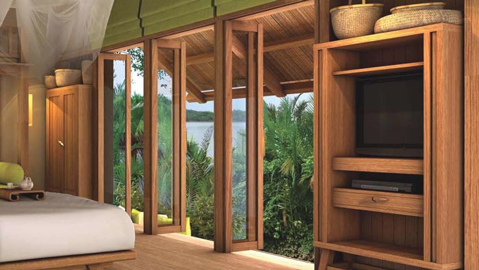 客房窗戶的設(shè)計:我們可以坐在木地板上眺望湖水,看著那沒有被污染的純凈湖水、看著那生長繁茂的各樣植物,在這里我們仿佛重活了新生,在這里我們仿佛回到了那遙遠(yuǎn)的古代,在這里我們不再是鋼筋水泥中的一員,而是一個獨立的生命體,在這樣我們的心靈得到解放。