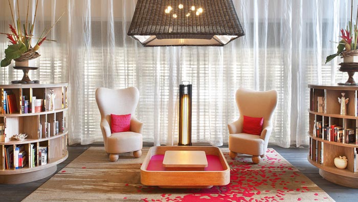 戶外客房的設計:此處位于酒店的一樓,這也是設計師的突發(fā)奇想,在我們看到客房基本上都在樓上,但是設計師認為那樣就浪費了這里的大好美景,故此設計師將客房布置在一樓的一側,此處讓顧客在室內(nèi)與室外之間互相轉化,讓顧客與美景更加接近。