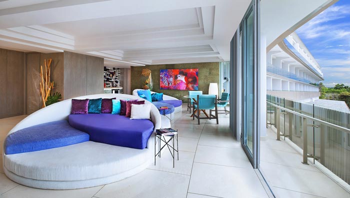 海景客房的設計:環(huán)顧四周在這里顧客看到的是汪洋的大海,這樣的感受不到現(xiàn)場是無法體會的,對于大海相信每一個都充滿了敬畏,但是很多人由于眾多原因無法親臨感受,設計師以此為目的打造了這樣的客房,讓顧客在這里見證海洋的魅力與感受海洋寬廣的胸懷。