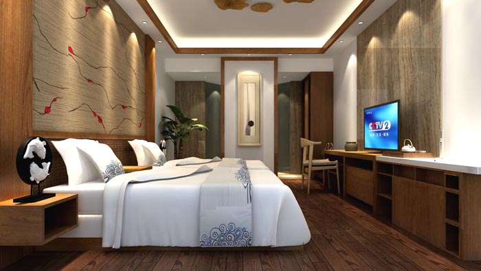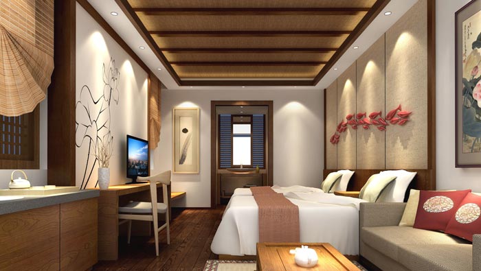 客房的設(shè)計(jì):當(dāng)顧客拖著疲憊的身體回到房間之后,最希望的就是躺下好好休息一下,這樣一來(lái)空間的氛圍就十分重要,而中式家具本身就有治愈的能力,因?yàn)槟敬碇偕弥惺郊揖唿c(diǎn)綴的空間,讓人更容易進(jìn)入深層次的睡眠,讓人在熟睡中得以快速的恢復(fù)疲憊的身心。
