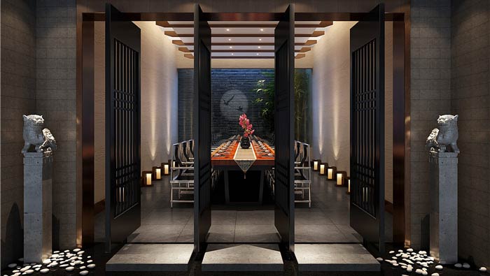 肥牛火鍋店小包廂設計:長方形的包廂、配上長方形的餐桌,加上花、竹子、餐具的點綴,讓整個空間更加接近自然,這里適合談業務、聚餐等等。