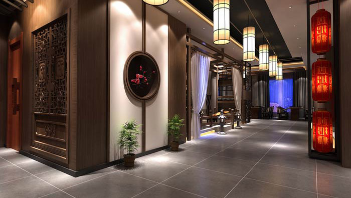 本次為新中式杭州火鍋店裝修設計效果圖,在本次火鍋店設計中,設計師以新中式為火鍋店設計關鍵詞,目的就是希望打造一個簡單、舒適的火鍋店就餐環境。