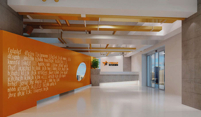 形象墻的設(shè)計(jì),設(shè)計(jì)師采用了橘黃色,這樣會(huì)更加醒目,讓形象墻的功能作用可以得到最大化開(kāi)發(fā)和利用。
