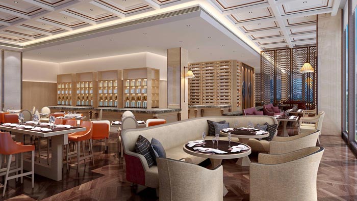 餐廳的設計:足不出戶是酒店給人的第一感受,在這里就是希望形成一個良好的內(nèi)部循環(huán),讓客戶在內(nèi)部體驗到所有需要的服務,在這里設計師以家對餐廳進行定義,在設計師看來現(xiàn)在社會最缺的就是一種氛圍,一種家的氛圍,設計師希望客戶在這里可以體會到家的感覺。