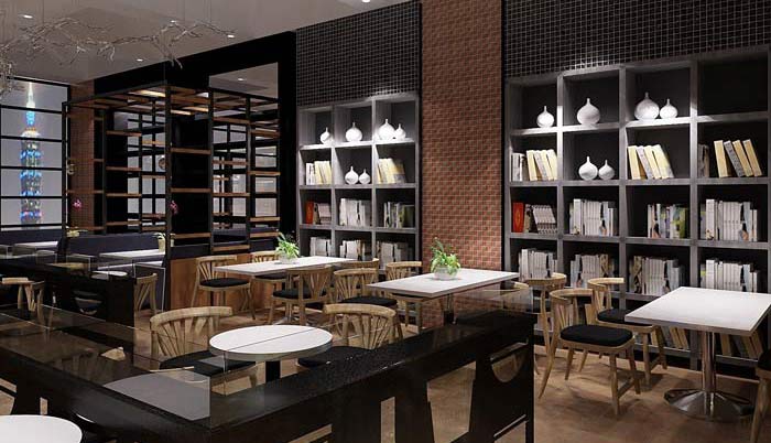 在軟裝設計的同時,設計師根據咖啡館的大小來決定咖啡桌,已達到與空間大小的配合,避免出現小空間配大咖啡桌,或者大空間配小咖啡桌。