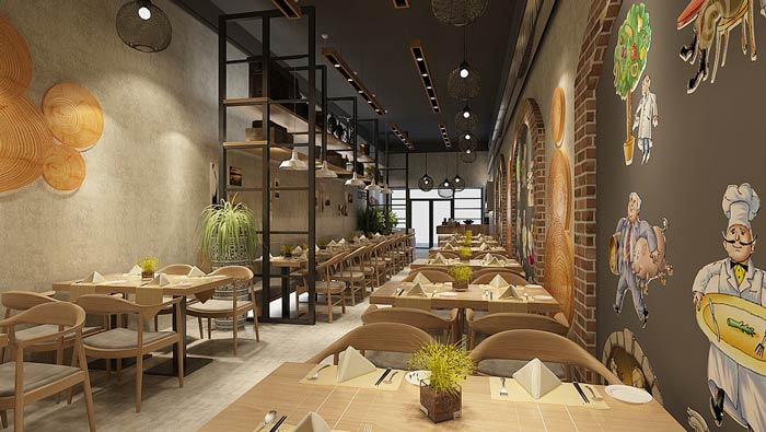 面館墻畫裝修設計效果圖