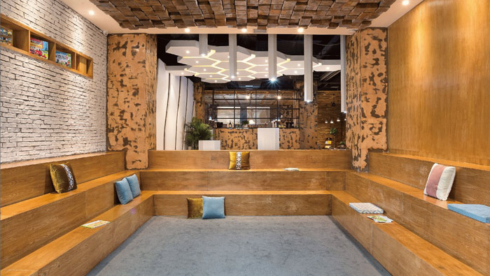 教育培訓(xùn)閱讀區(qū)設(shè)計(jì):在此處設(shè)計(jì)的時(shí)候,設(shè)計(jì)師的想法就是希望閱讀可以和玩耍結(jié)合在一起,設(shè)計(jì)師以四方格做為基本框架,以階梯狀打造閱讀區(qū),中間自然凹陷是孩子玩耍的區(qū)域,勞逸結(jié)合正是此處的最佳說明。
