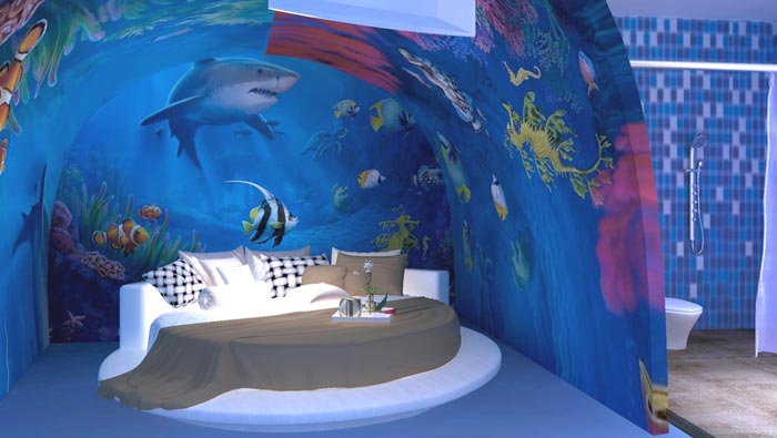 情侶主題酒店海底客房裝修設計案例效果圖