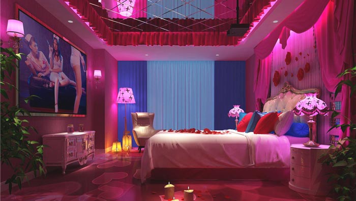 情趣客房的設計:對于客房的設計,設計師也有這很多嘗試,但是設計師不是一味的模仿,而是在設計的同時在其中加入本土化的設計,讓其可以在此處開花結果,設計師認為設計不僅是求新求變,而更多的是對人的尊重,因為設計最終針對的還是人,但是由于文化的不同,其表現方式也截然不同。