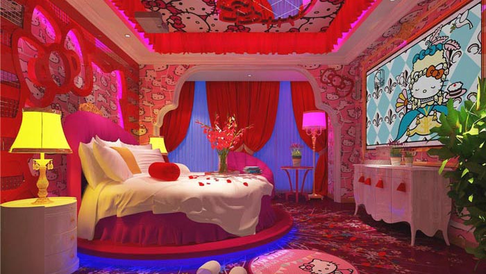 本次為情侶主題酒店裝修設計項目,設計師共規劃22間主題客房,目的希望為情侶們帶來22種不同的體驗,其中有Hello Kitty風的粉紅色夢想、有沙灘海洋的無限風光、有穿越時空的甜蜜之戀、有洞房花燭的甜蜜體驗,在這里設計師希望戀人們可以在不同的客房之中,都體驗到不一樣的感受。