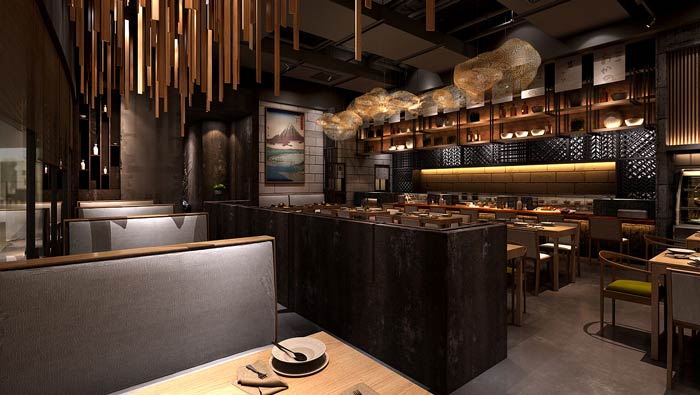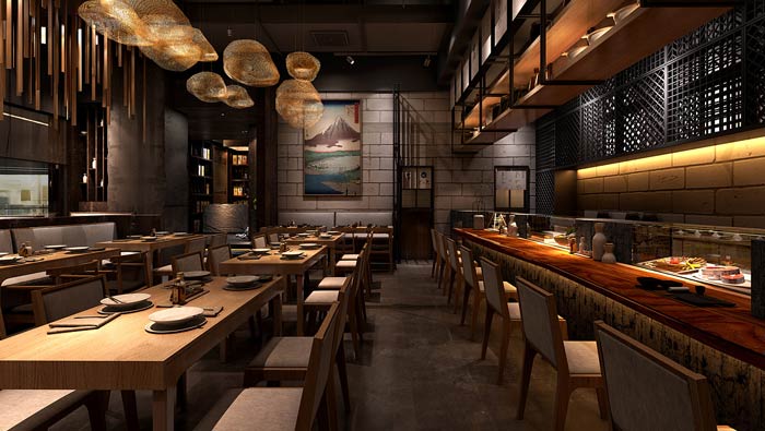 本次為日式料理餐廳裝修設(shè)計(jì)方案,在本次日式餐廳的設(shè)計(jì)中,設(shè)計(jì)師首先需要做的就是將其本土化,任何外來的東西,不經(jīng)過改變都是難以生存的,餐飲設(shè)計(jì)更是如此,故此設(shè)計(jì)師在日式餐廳的基礎(chǔ)上,進(jìn)行了調(diào)整與優(yōu)化,讓其更加實(shí)用中國市場,只有如此餐廳才能生存,才能涅槃重生。