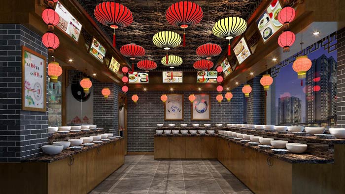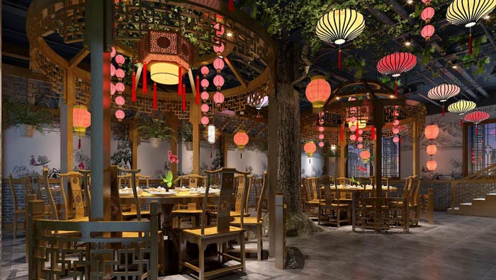 農家私房菜餐區設計:這里恰似紅樓夢中的大觀園,家庭式的聚餐在這里份外契合,一大家子圍在這里吃飯,讓我們尋回曾經的美好生活,讓天倫之樂重回我們的生活。