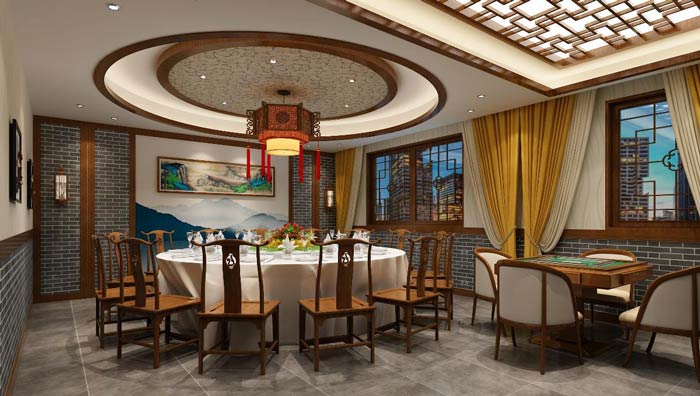 農家私房菜大包廂設計:在大包廂中包含著娛樂,這里讓客戶在吃飯之后,可以打幾圈麻將,在吃完飯之后稍事休息,打幾圈麻將起身,一切的一切符合人體新陳代謝的機制。