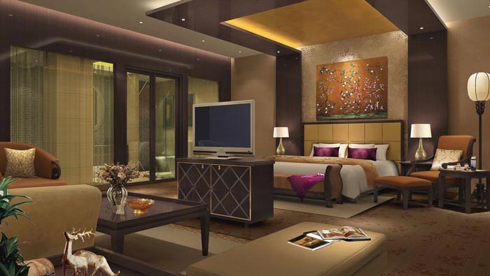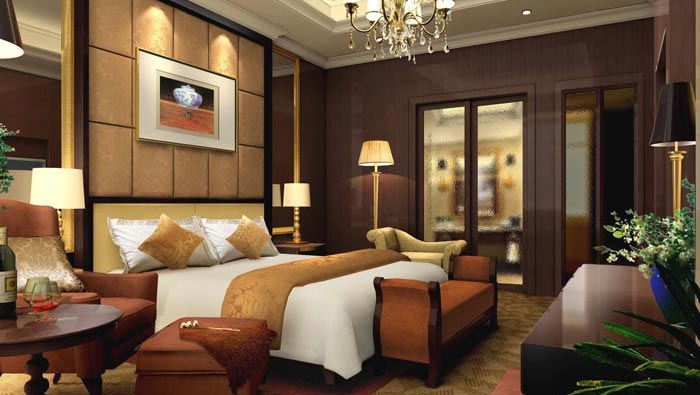 總統(tǒng)套房臥室的設(shè)計(jì):靜怡是此處給人的感覺(jué),在這里給人的感覺(jué)不僅是安靜,而更多的是文化的熏陶,床邊的躺椅讓他們躺在那里看書,閱讀書籍是一種享受,在設(shè)計(jì)師看來(lái)書籍是連接古代先賢的重要媒介,在這里顧客的心可以完全安靜下來(lái),去體會(huì)心外無(wú)物的哲學(xué)問(wèn)題。