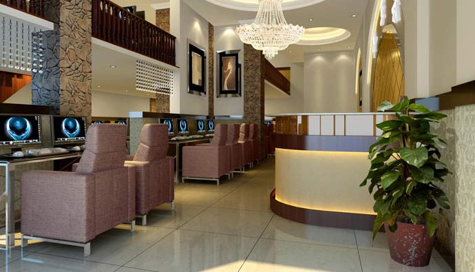 設(shè)計理念:設(shè)計師在龍雨網(wǎng)絡(luò)會所裝修設(shè)計的時候,和業(yè)主進行了深入的交談,通過交談得知業(yè)主希望網(wǎng)咖可以裝修的高檔、時尚。