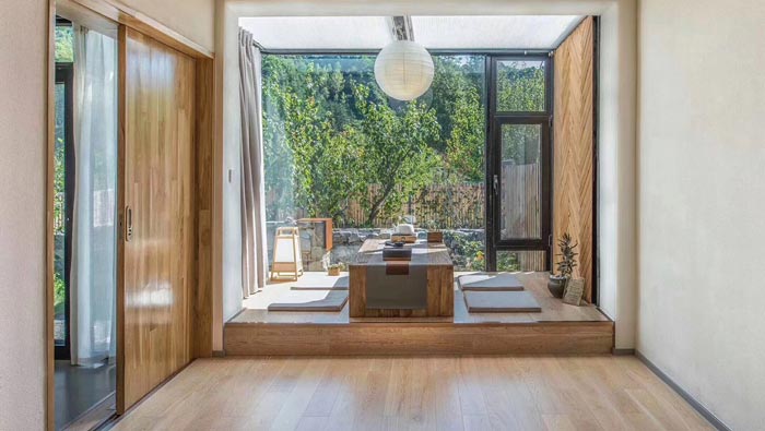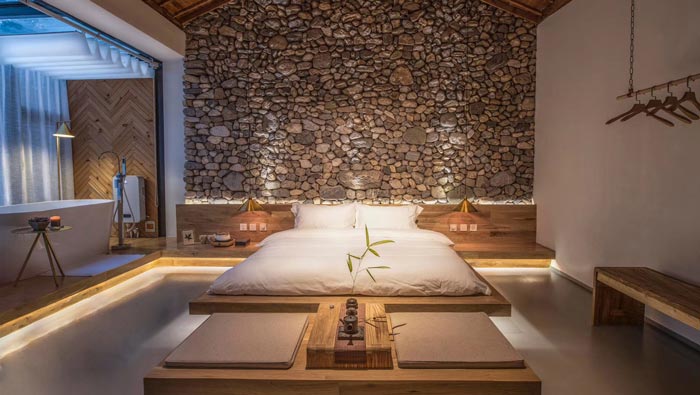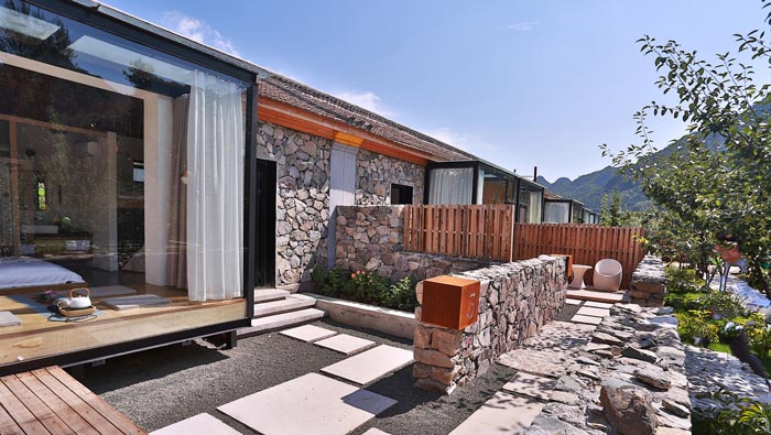 本案鄉(xiāng)村精品民宿設(shè)計(jì)介紹結(jié)束,項(xiàng)目四面山巒起伏,一條小溪淌過古樸的村落,設(shè)計(jì)師充分挖掘并利用自然資源,實(shí)現(xiàn)依山而建、臨水而居的理想居住空間。