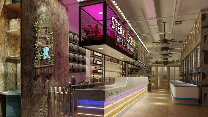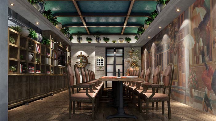 西餐廳前臺裝修設(shè)計(jì):工業(yè)風(fēng)、田園風(fēng)在這里得到很好的融合,讓客戶進(jìn)入空間,首先感受到的是自然氣息,自然氣息讓客戶焦躁的心靈得到有效的緩解,讓客戶吃的安心、吃的放心。