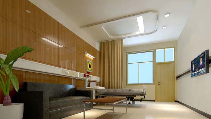 醫院室內空間分類主要有:腦外、胸外、泌尿外科、肝膽外科、燒傷專科、顯微外科、骨科、心血管專科、神經內科、肝病專科、腎病專科、糖尿病專科、血液病專科,以及婦、兒、傳染、中醫、眼、口腔、耳鼻喉、皮膚、精神病等二十多個臨床科室。