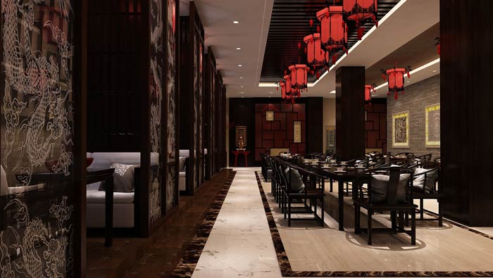 中餐廳過道設(shè)計(jì):過道的燈光設(shè)計(jì),設(shè)計(jì)師采用比明亮稍微幽暗,比幽暗稍微明亮的燈光設(shè)計(jì),這樣的設(shè)計(jì)模式,是希望讓客戶感受到柳暗花明又一村的感覺。