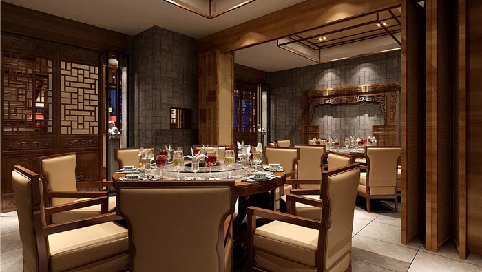 中式餐廳進(jìn)門區(qū)設(shè)計(jì):客戶進(jìn)入空間之后,首先感受到的就是古色古風(fēng),在這里客戶與快速的時(shí)代暫時(shí)脫離,在這里開啟客戶的慢生活。