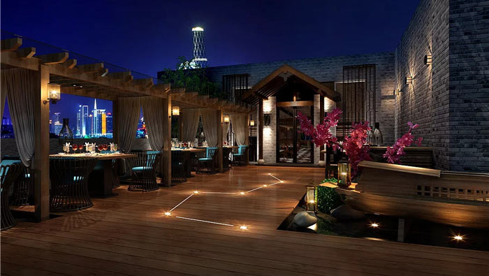 中式餐廳陽臺(tái)設(shè)計(jì):北斗七星經(jīng)過燈光的特殊處理重現(xiàn)在人間,這讓我們仿佛自身與天上人間一般,在這里現(xiàn)實(shí)與古代融為一體,讓人感受到不一樣的就餐環(huán)境。