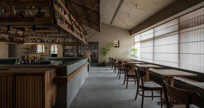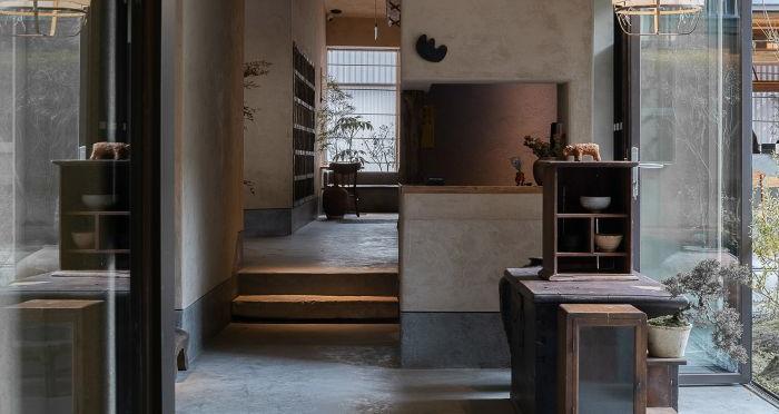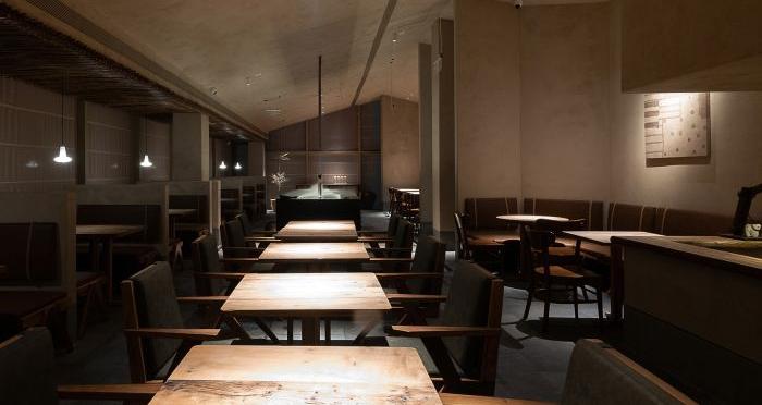 元古雲境是中國西南地區的首店,也是成都的第一家店。餐廳位于成都太古里的二樓和三樓,通過樓梯進行連接。入口設計采用老石板和老木板,給人一種沉穩且神秘的感覺。三樓平臺上有一個精致的小院,與自然更加親近。營業區分為廚房、包間、洗手間、吧臺、院子和散臺區。吧臺、院子和散臺區互為景觀,相互依存。洗手間和包間位于廚房的角落,可以控制成本,減少干擾。散臺區相對獨立,安靜,讓人更加愜意。設計的靈感來自于元古精神,即簡單、自然、溫暖。在解決動線問題、空間利用率、節能和光線等問題后,自然形成了這種設計。