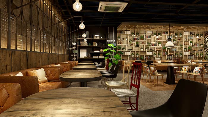 韓式主題餐廳餐區設計:兩人桌、四人桌、六人桌依次安置在空間之中,沙發、餐桌、餐椅組成的餐區,讓空間更加多樣化,也讓空間更實用、更有特色。