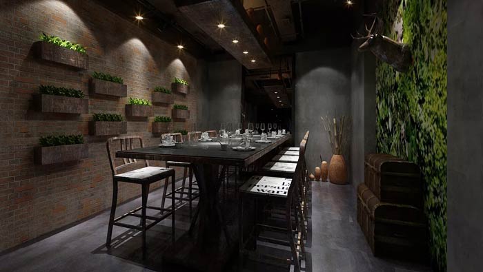 特色主題餐廳窗戶設(shè)計:這里的窗戶元素也非常簡單,用鐵絲構(gòu)成的簡易窗戶,目的就是希望用簡單裝飾空間,這樣裝飾的空間,讓人仿佛回歸自然,從復(fù)雜中剝離。
