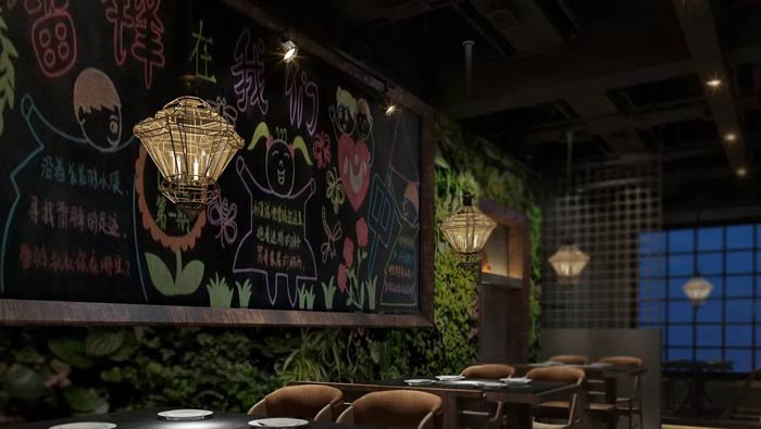 特色主題餐廳墻體設(shè)計:舌尖記憶的老味道,好吃吊炸天,兩種不同的說話方式,在這里得到很好的融合,既有回憶的美好,又有現(xiàn)在的美好,一切的一切完美融合。