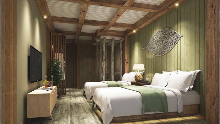 綠葉客房的設(shè)計(jì):一片樹葉加上滿屋的綠色調(diào),在設(shè)計(jì)師看來現(xiàn)在的人,久坐在辦公室,每天麻木的開機(jī)關(guān)機(jī),無數(shù)的表格,無數(shù)的匯報(bào),突然看到這片發(fā)光的葉子,好像拍打著什么,當(dāng)我們隨著葉子的步伐漸漸走進(jìn)了心中埋藏很深的感動(dòng),在設(shè)計(jì)師看來每個(gè)微小的細(xì)節(jié),都值得大家細(xì)細(xì)體味、值得大家反復(fù)細(xì)閱。