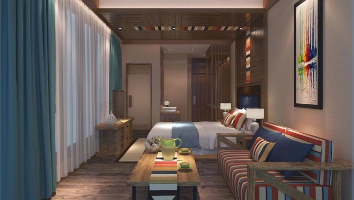 本次為主題概念酒店裝修設(shè)計(jì)項(xiàng)目,設(shè)計(jì)師在于客戶的交流中,了解到客戶希望打造一個(gè)休閑、遠(yuǎn)離都市、潮流的概念酒店,這就對(duì)設(shè)計(jì)師提出了一個(gè)新的難題,就是如何去把握這樣的想法,最后設(shè)計(jì)師在考察過現(xiàn)場之后,與客戶邊走邊交談,最后設(shè)計(jì)師將設(shè)計(jì)理念定位于“個(gè)性與原創(chuàng)、舒適與環(huán)保”。