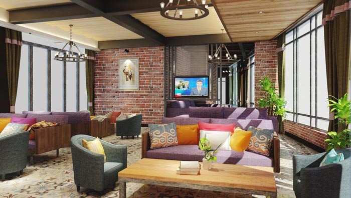 休閑區(qū)域的設(shè)計(jì):此處是客戶們聚集的一個(gè)地方,此處給人的第一感覺就是明亮、舒適、色彩宜人,這也是設(shè)計(jì)師希望給大家展示的,在設(shè)計(jì)師看來酒店不是諸位大家提供住宿,而且有很多附加的功能,設(shè)計(jì)師就是希望透過各種不同的附加功能,讓酒店走入客戶的心中,讓客戶不虛此行。