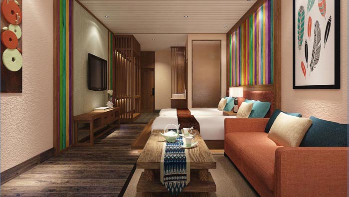 古風(fēng)+現(xiàn)代客房的設(shè)計(jì):此處可以感覺到濃郁的古色古風(fēng),雖然不明顯但是卻總有這樣的感覺,現(xiàn)代風(fēng)的融入給人一種眼前一亮的感覺,當(dāng)客戶拖著勞累的身體進(jìn)入客房之后,一杯濃郁的茶香會(huì)讓人們瞬間感覺精神起來,靜靜的坐下來品一杯茶水,一身的疲憊盡皆消去。