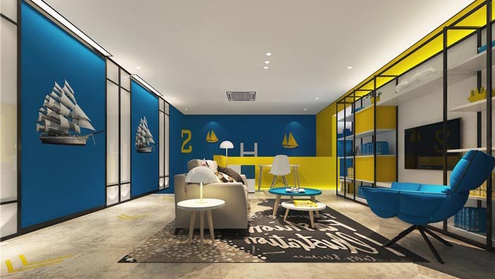 本次為港灣主題酒店裝修設計項目,設計面積在1500平方,設計師在與客戶的交流中,了解到客戶希望給大家營造一個避風、避浪、安全停泊的場所,這是客戶游歷海洋之后突發(fā)的靈感,因為對于很多人來說,海洋是一個未知的區(qū)域,讓人充滿了好奇、神秘,客戶就是希望將其搬上陸地,讓更多的人可以感受到。