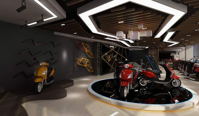 設計理念:設計師是首次接手自行車、電動車在一起的專賣店裝修設計,在設計之初和業主進行了深入的交談,不管是電動車展廳還是自行車展廳,在設計的時候,都以透出各自的特點為首要條件,通過設計襯托出電動車和自行車不一樣的風格。